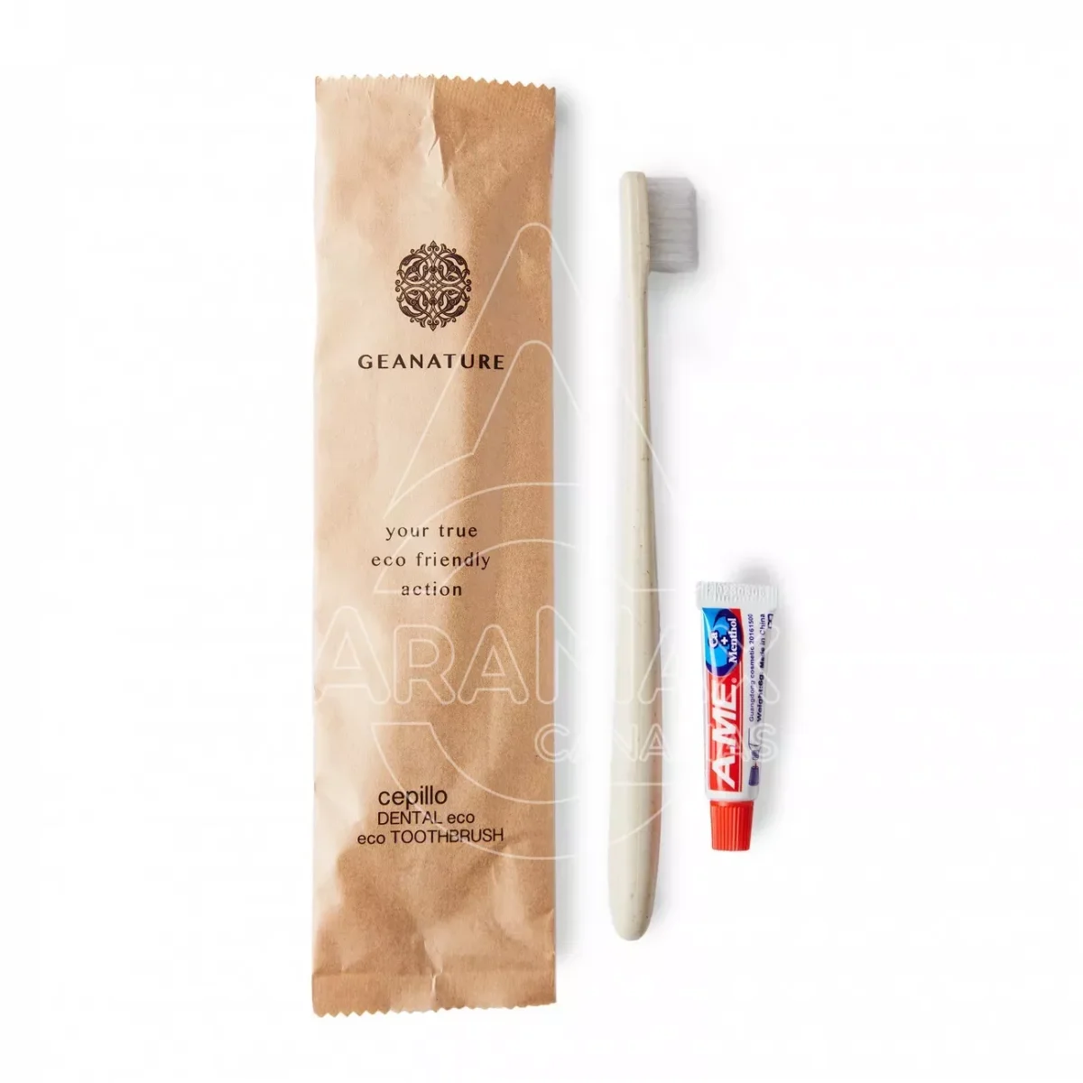 AMENITIE SET DENTAL CEPILLO ECO TRIGO GEANATURE (CEPILLO DE FIBRA DE TRIGO + FLOW PACK DENTAL 6GR.)