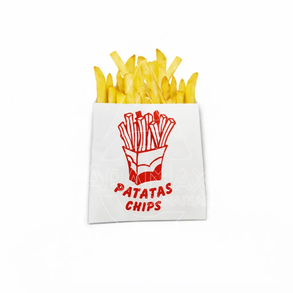 Bolsas antigrasa perfectas para tus patatas fritas Y es que, las bolsas de papel para patatas fritas son una de las mejores opciones. La principal ventaja de nuestras bolsas para patatas fritas es su propiedad antigrasa, lo que evita que el aceite traspase el papel y manche todo lo que está a su alrededor.
