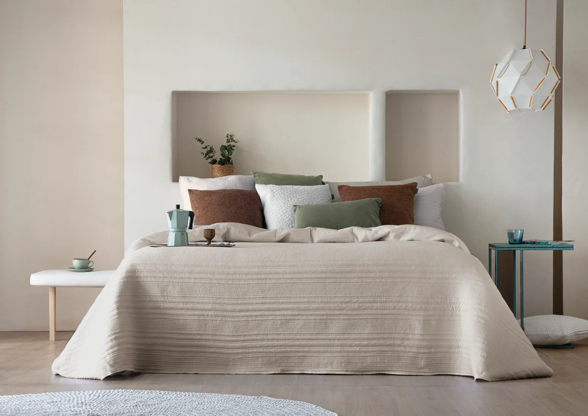 El bordado añade profundidad y estilo sin recargar, creando un ambiente sereno y armonioso. Su tacto agradable y su caída natural hacen que sea una pieza ideal para renovar la cama con un toque de elegancia discreta.