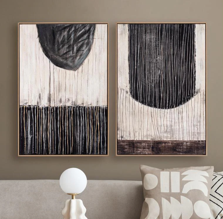 Set de dos cuadros en tamaño 60×90 cm, de estilo abstracto pintados en óleo sobre lienzo.