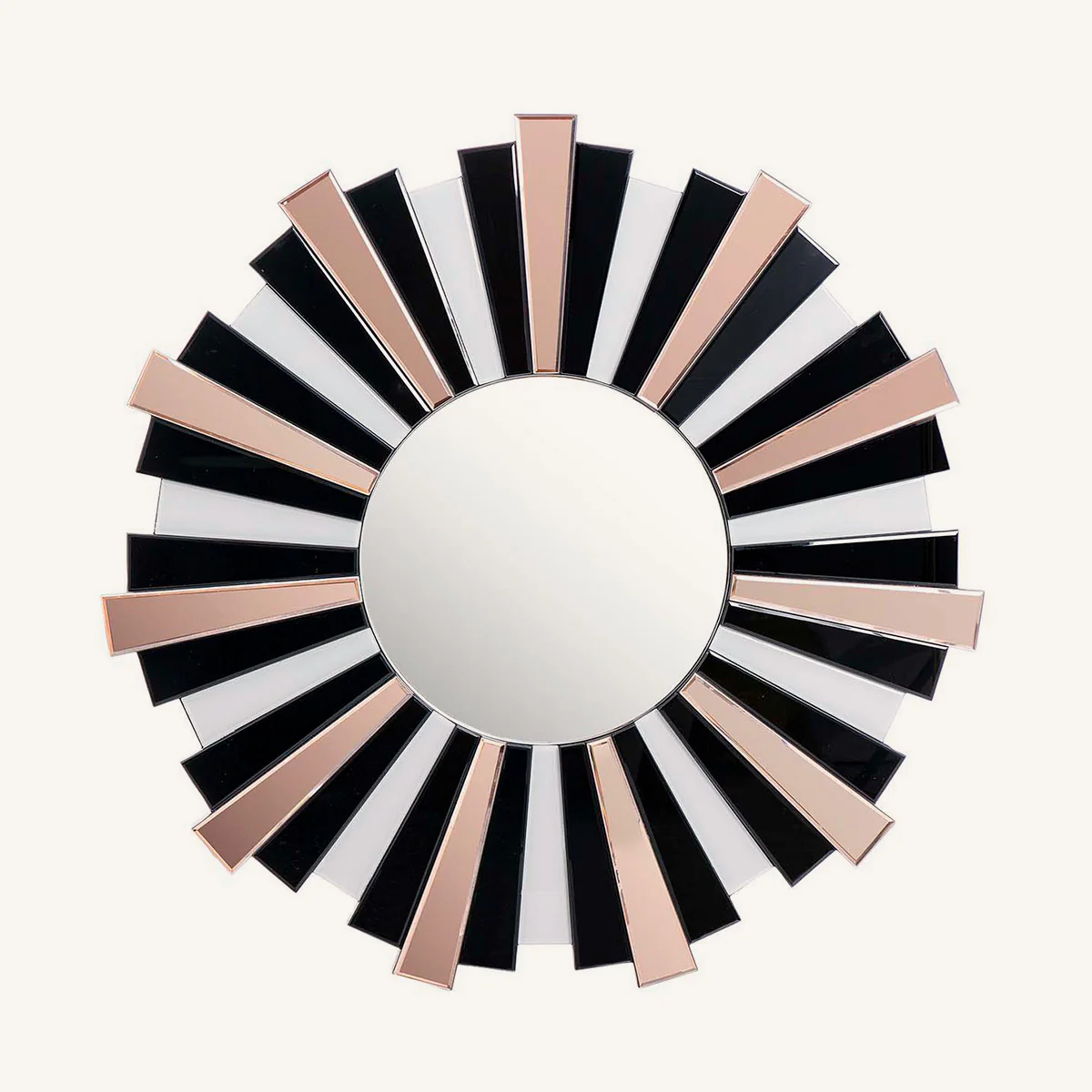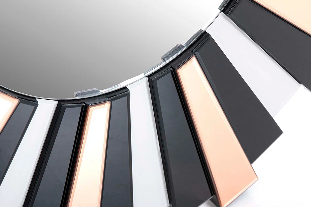 Espejo Reinata en color dorado, negro y gris. Fabricado de cristal y espejo, esta pieza es una mezcla de belleza y funcionalidad perfecta para colocar en cualquier habitación, salón o recibidor.