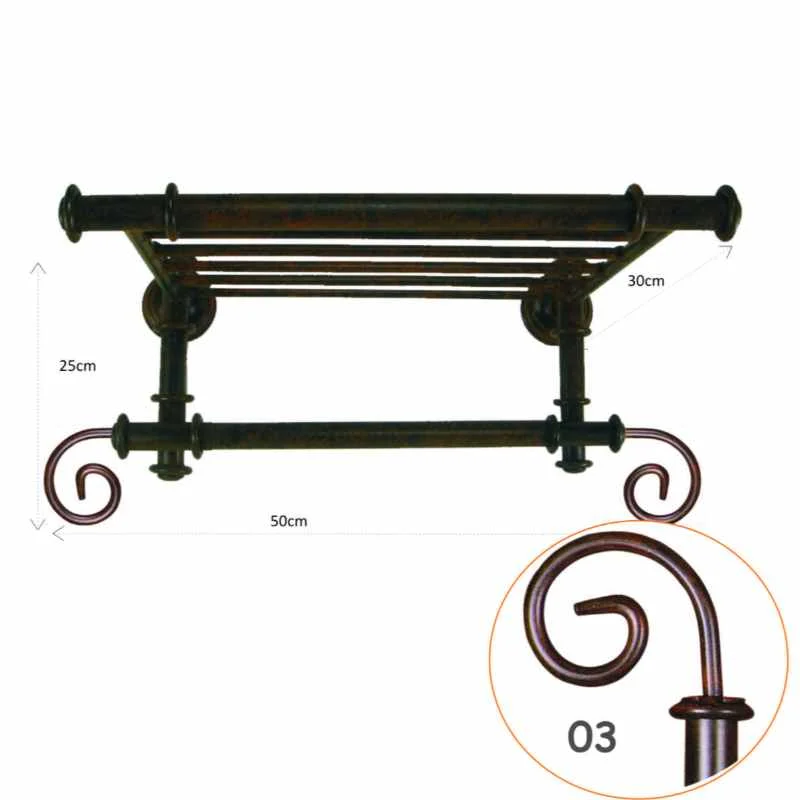 Estantería toallero baño retro 50 cm : Espiral clásica, curva que describe varias vueltas alrededor de un punto, alejándose cada vez más de él. Los estante con toallero te permiten amueblar el baño con estilo pero realzando cada espacio y manteniendo tu personalidad de una manera bastante original. Estantería toallero baño: