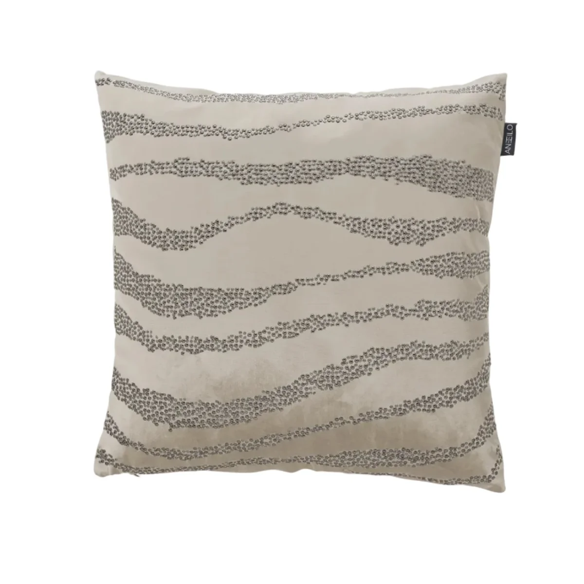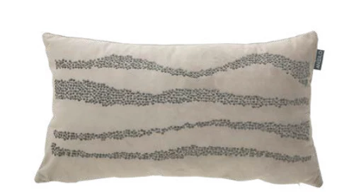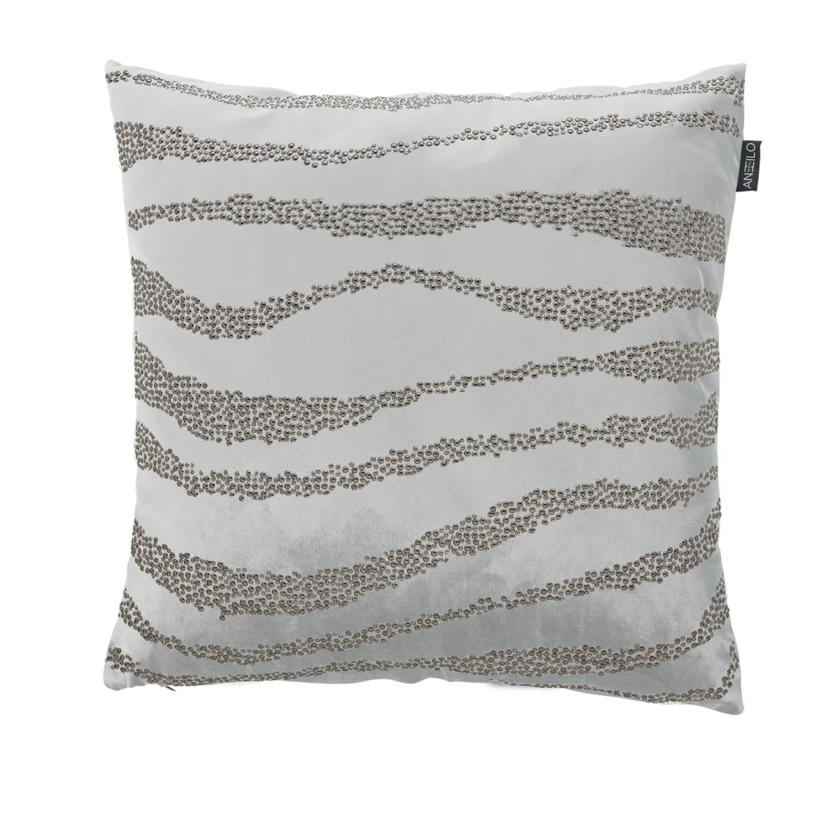 El cojín Luxury 22 se presenta como una pieza decorativa moderna y luminosa, confeccionada en tejido aterciopelado de tacto suave que aporta calidez y elegancia al instante. Su diseño incorpora puntitos brillantes dispuestos en líneas curvas, creando un efecto dinámico y sofisticado que capta la luz y añade profundidad visual.