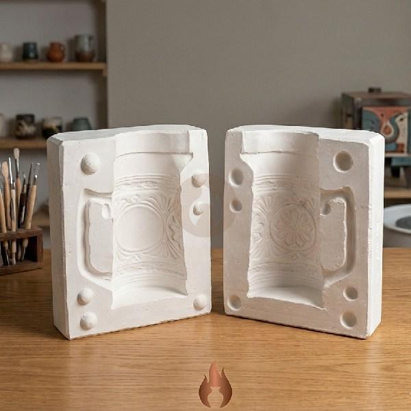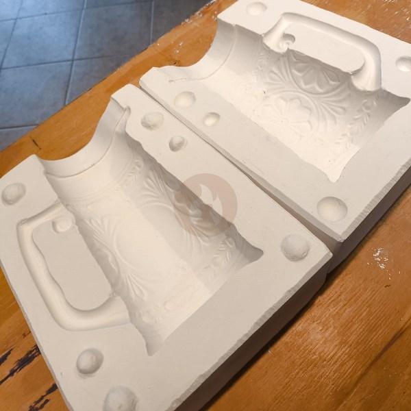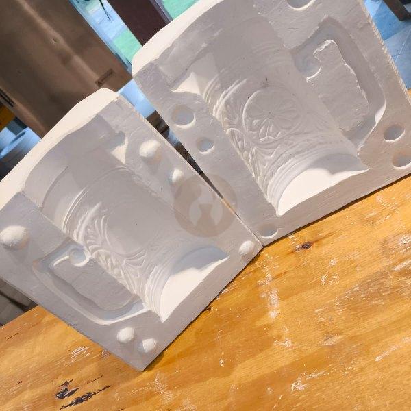 El sistema de molde en dos partes facilita el desmolde y asegura una correcta formación tanto del cuerpo como del asa, manteniendo la forma y los detalles en cada reproducción.