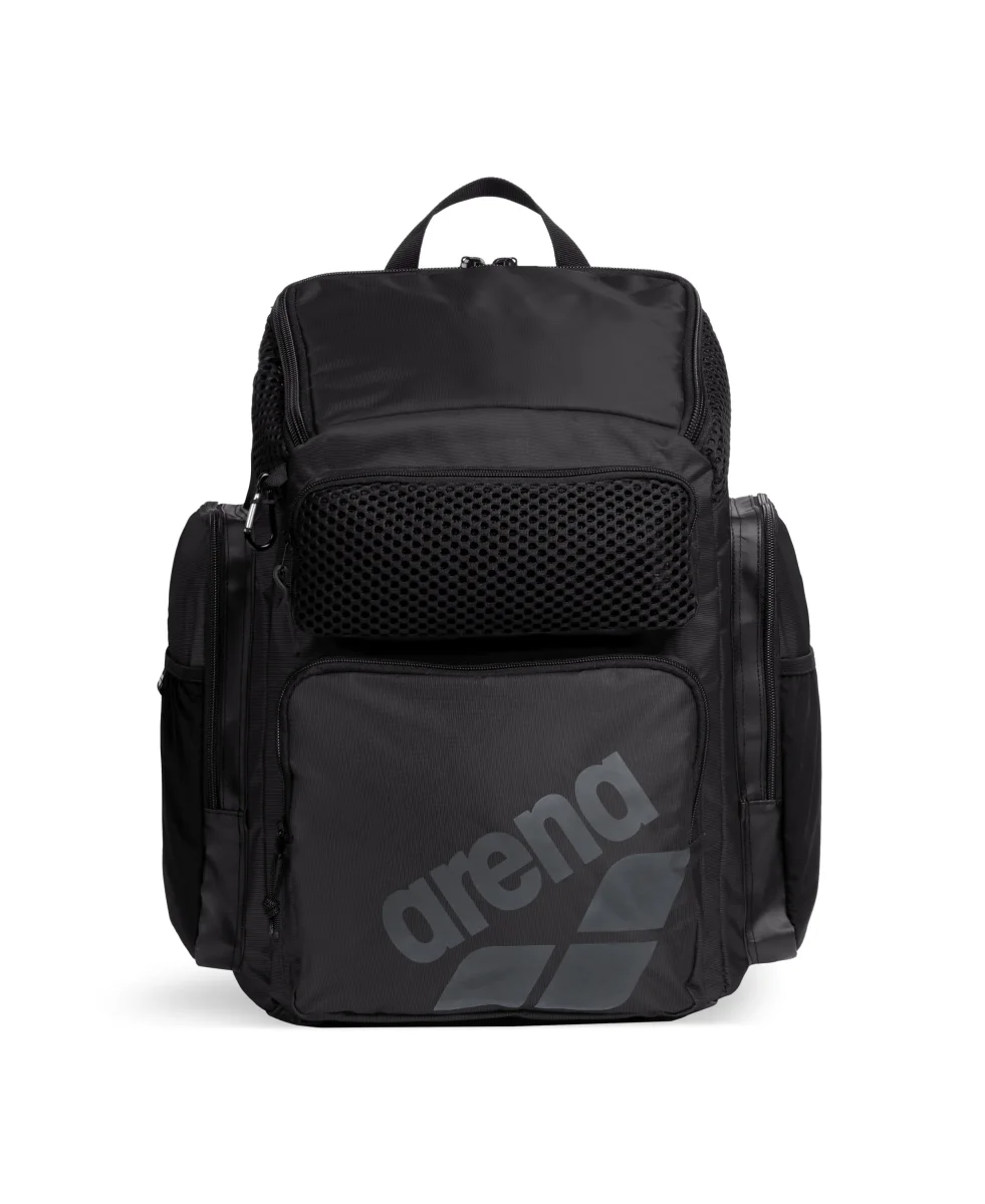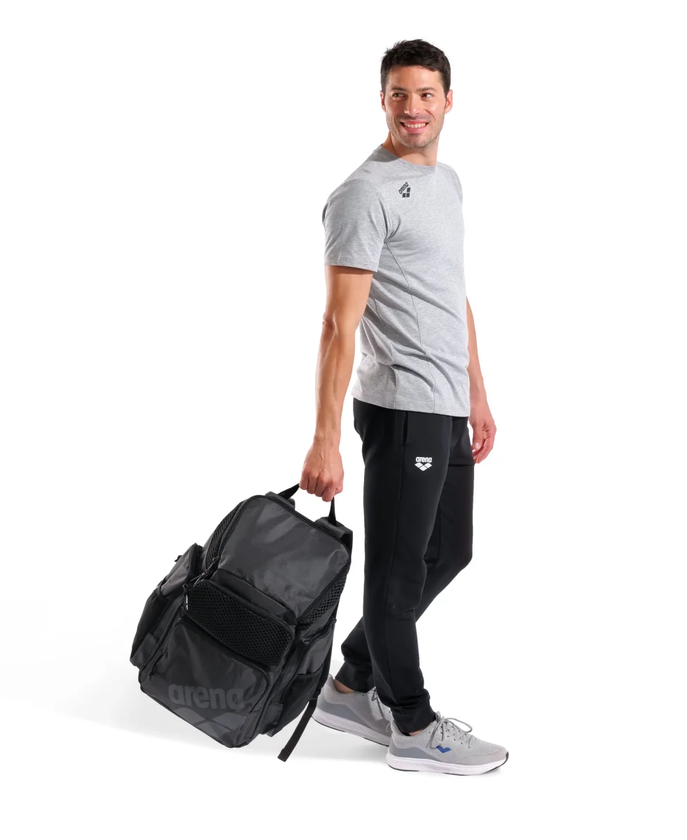 Organiza todas las cosas que necesitas para tu entrenamiento. La gran mochila arena One Go 45L con diseño de carga superior ayuda a guardar y acceder fácilmente a todas tus pertenencias. El espacioso compartimento principal y cuatro bolsillos delanteros exteriores con cremallera ofrecen diferentes opciones de almacenaje. Los insertos herméticos y transpirables están diseñados para mantener separadas las cosas húmedas y secas. Con bolsillo inteligente para el portátil y dos bolsillos exteriores para botellas. Aquabreathe, el nuevo sistema de gestión de la humedad de arena, combina tejidos transpirables y repelentes al agua para formar un sistema de ventilación avanzado que mantiene el agua fuera y tu equipo seco. El panel trasero transpirable garantiza un transporte sin sudar. Con práctica correa para fijarla fácilmente a una maleta. La mochila se cuelga fácilmente con el mosquetón incluido. El fondo repelente al agua y tejido principal repelente al agua ofrecen protección de la humedad y la suciedad. Dimensiones: 50 x 40 x 25 cm, 45L