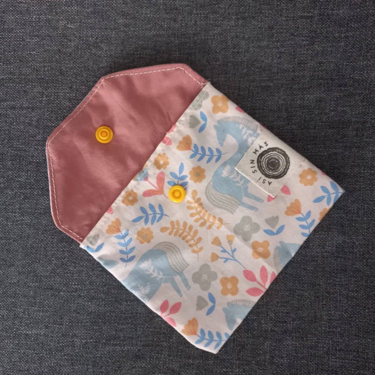 Lleva contigo todo lo que necesitas con este neceser de algodón hecho a mano, diseñado en un práctico formato tipo sobre. Su tamaño compacto lo hace ideal para guardar cosméticos, accesorios, medicamentos o pequeños objetos dentro del bolso o la mochila.