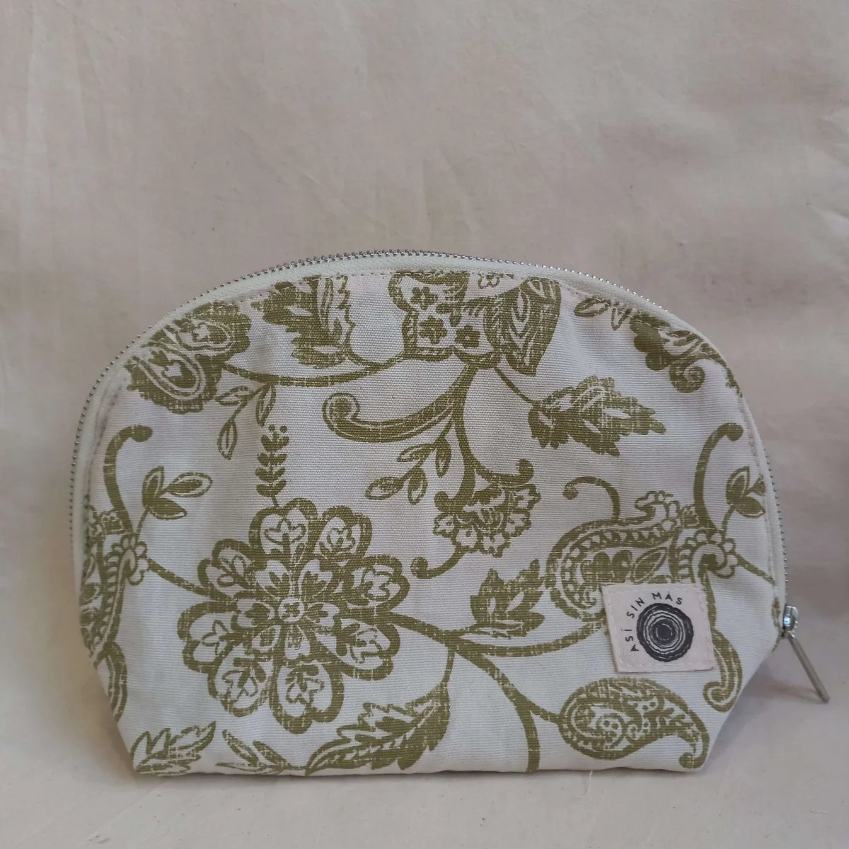 El diseño de este neceser de tela grande es en forma de concha, utilizamos una cremallera metalizada de algodón natural de calidad que permite abrir el neceser casi por completo lo que facilita ver de un solo vistazo todo lo que guarda le neceser.