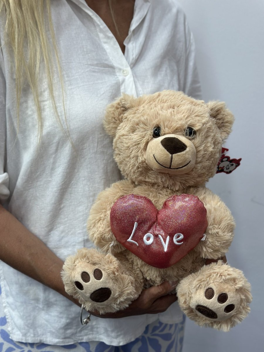 Acompañá tus flores con un osito para San Valentín. Hay de distintos tamaños