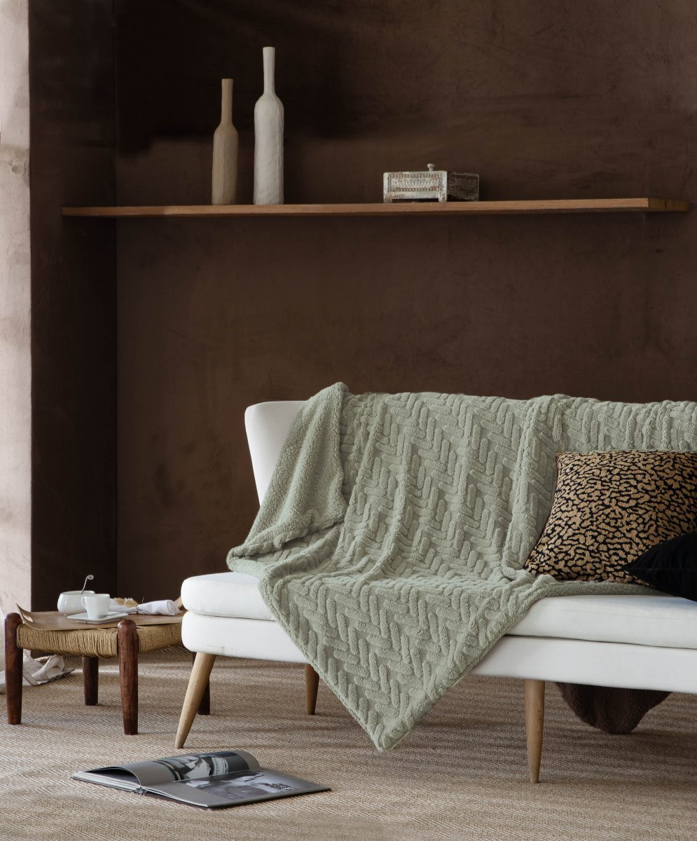 El plaid Conor destaca por su acabado estilo espiga y su tacto sedoso. Ideal para decorar tu hogar, aporta un toque moderno y elegante. Con reverso sherpa tipo borreguito a tono y tacto Soft ultrasuave, es perfecto como manta auxiliar o elemento decorativo para sofá o cama. Sus medidas son 130 x 170