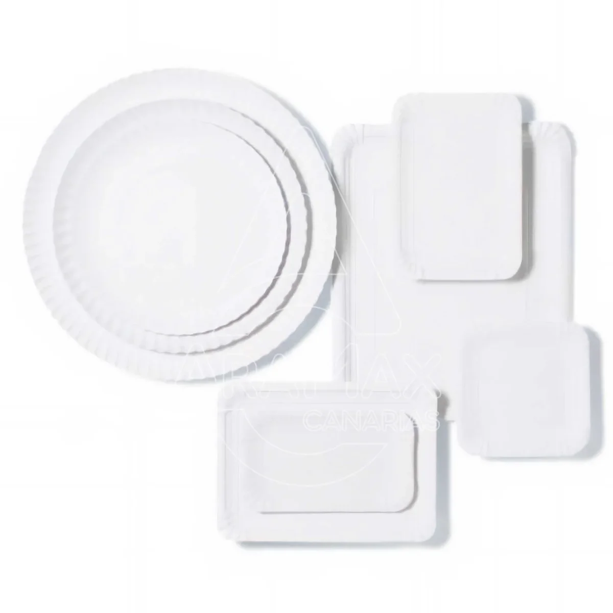 Platos de cartón con diferentes opciones de tamaños. Ideales para canapés, pastelería, pastas de té, trozos de tartas etc. Se recomienda recubrir con una blonda calada circulares.