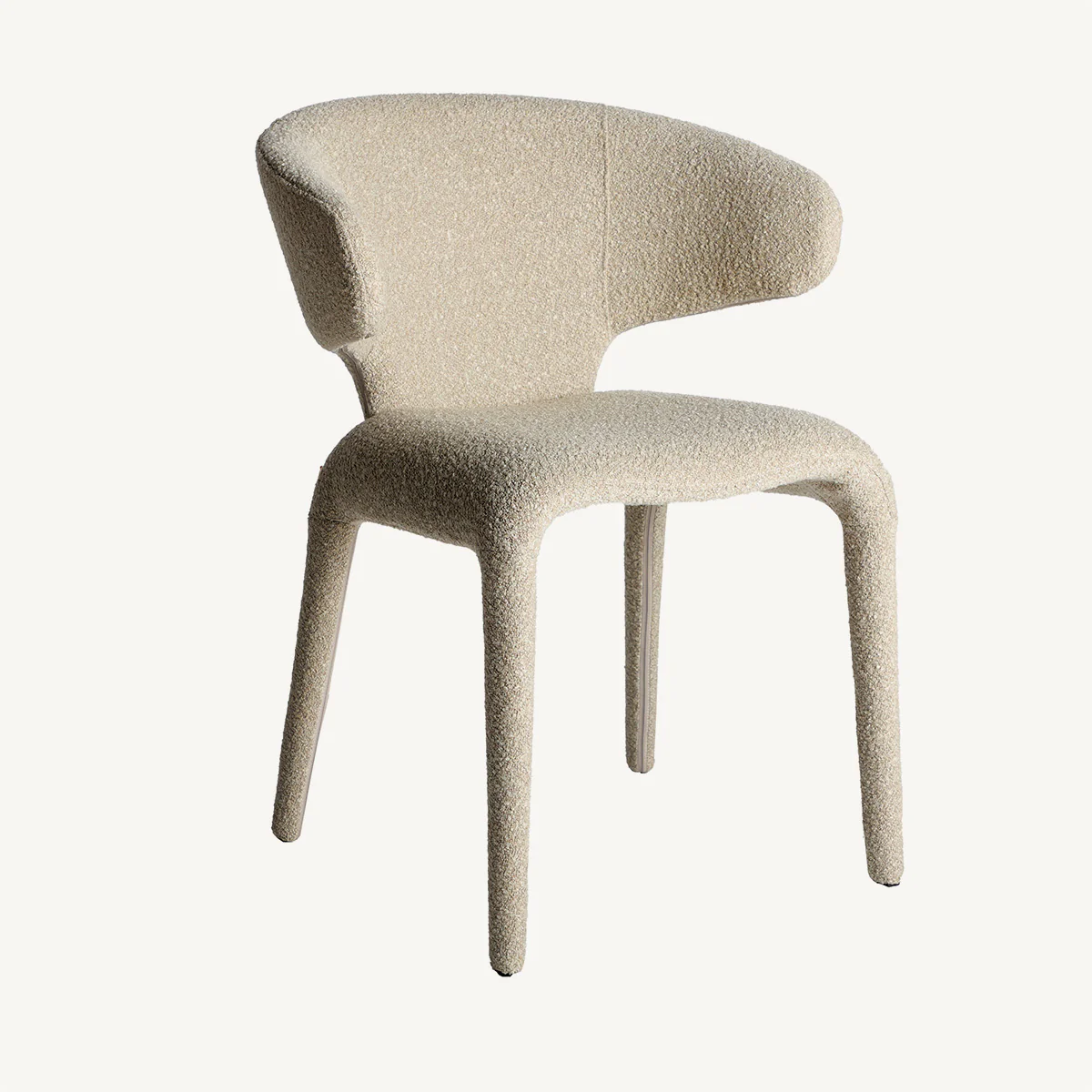 Silla Langres en color beige, de estilo Art déco. Fabricado en poliéster, combinado con acero inoxidable.