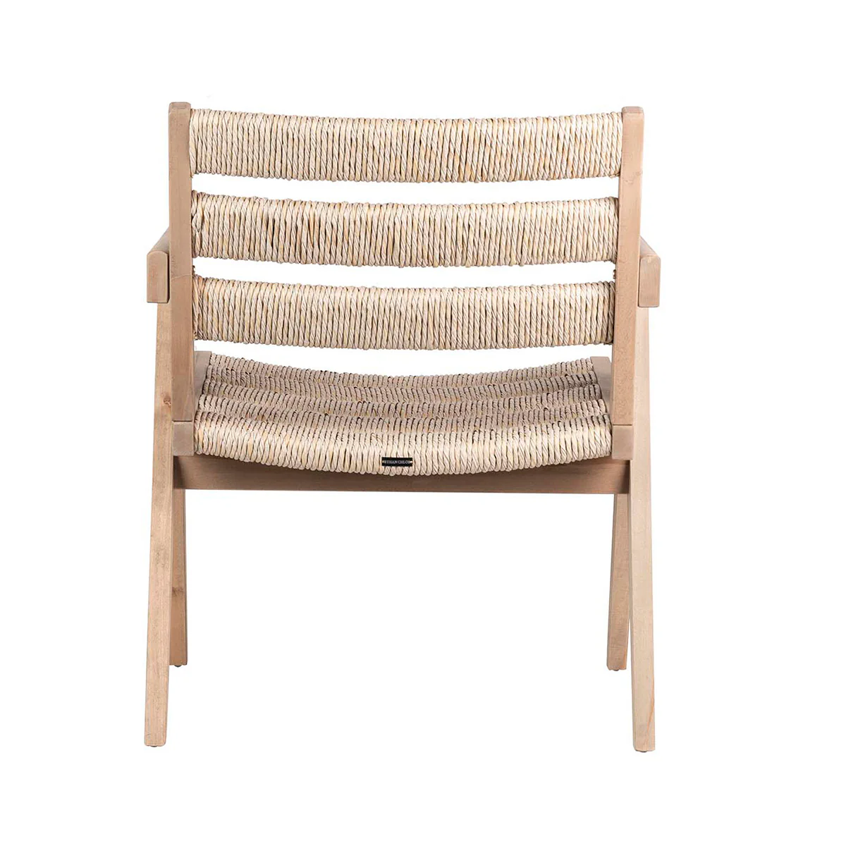 Silla Patagua de color marrón natural, fabricada en madera de olmo y ratán.