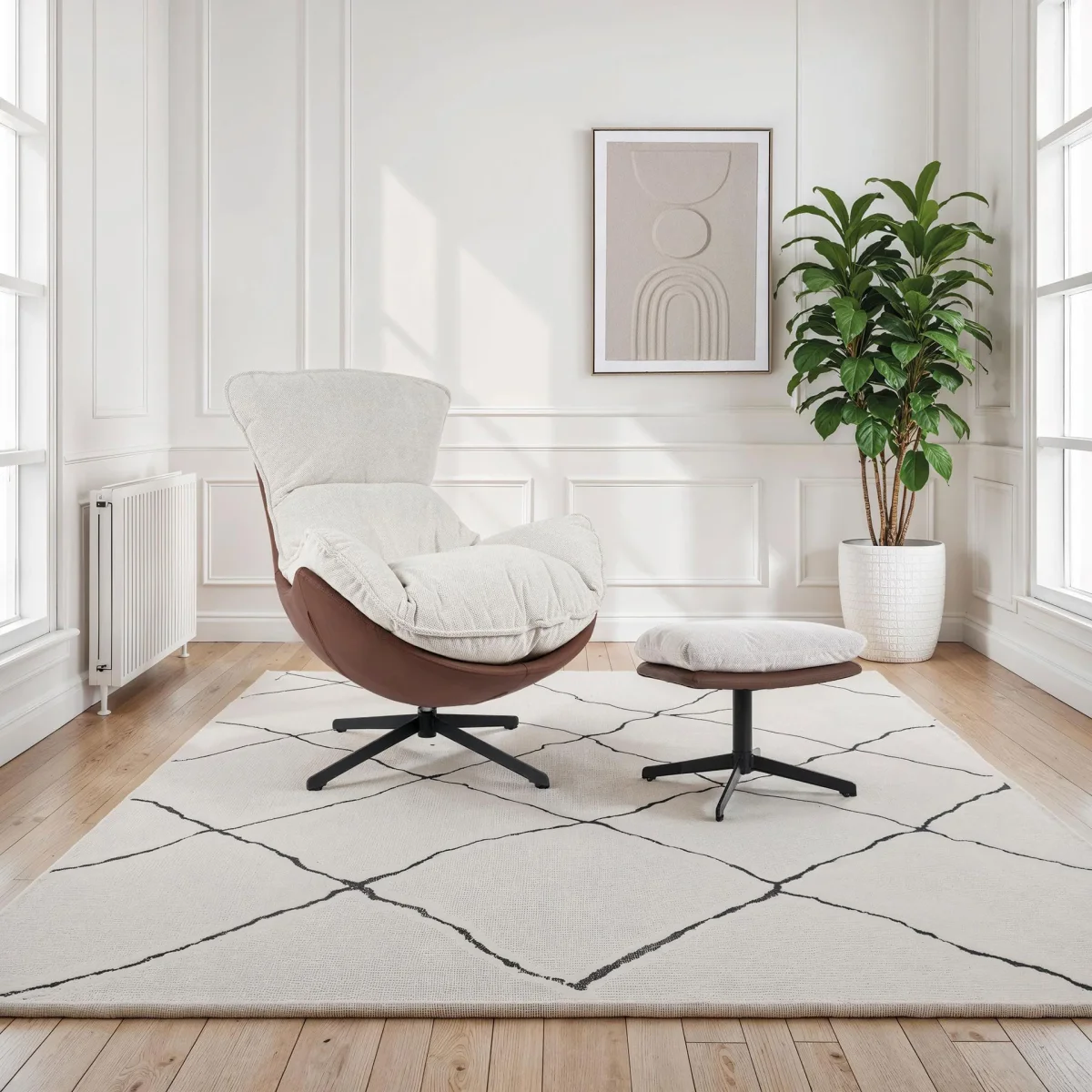 Tapizado en tono terracota con blanco roto, el sillón Hans combina diseño y resistencia. Su tejido antimanchas, ignífugo y a prueba de arañazos de mascotas, lo convierte en el aliado perfecto para hogares con perros o gatos, siempre impecable y fácil de mantener.