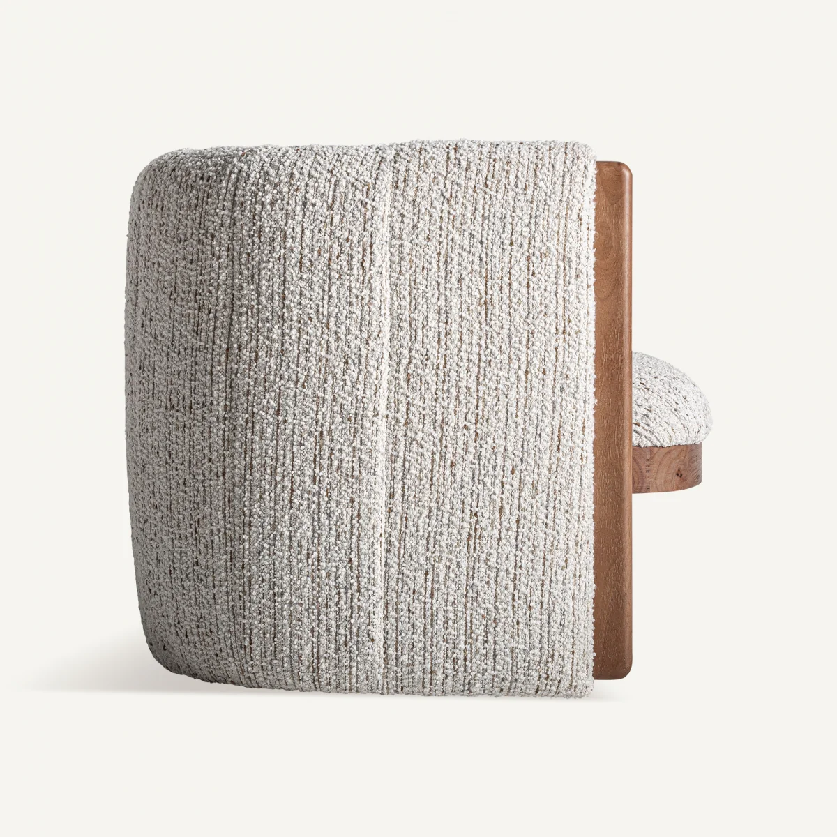 Sillón Pino fabricado en madera de pino, combinado con poliéster marrón y espuma.