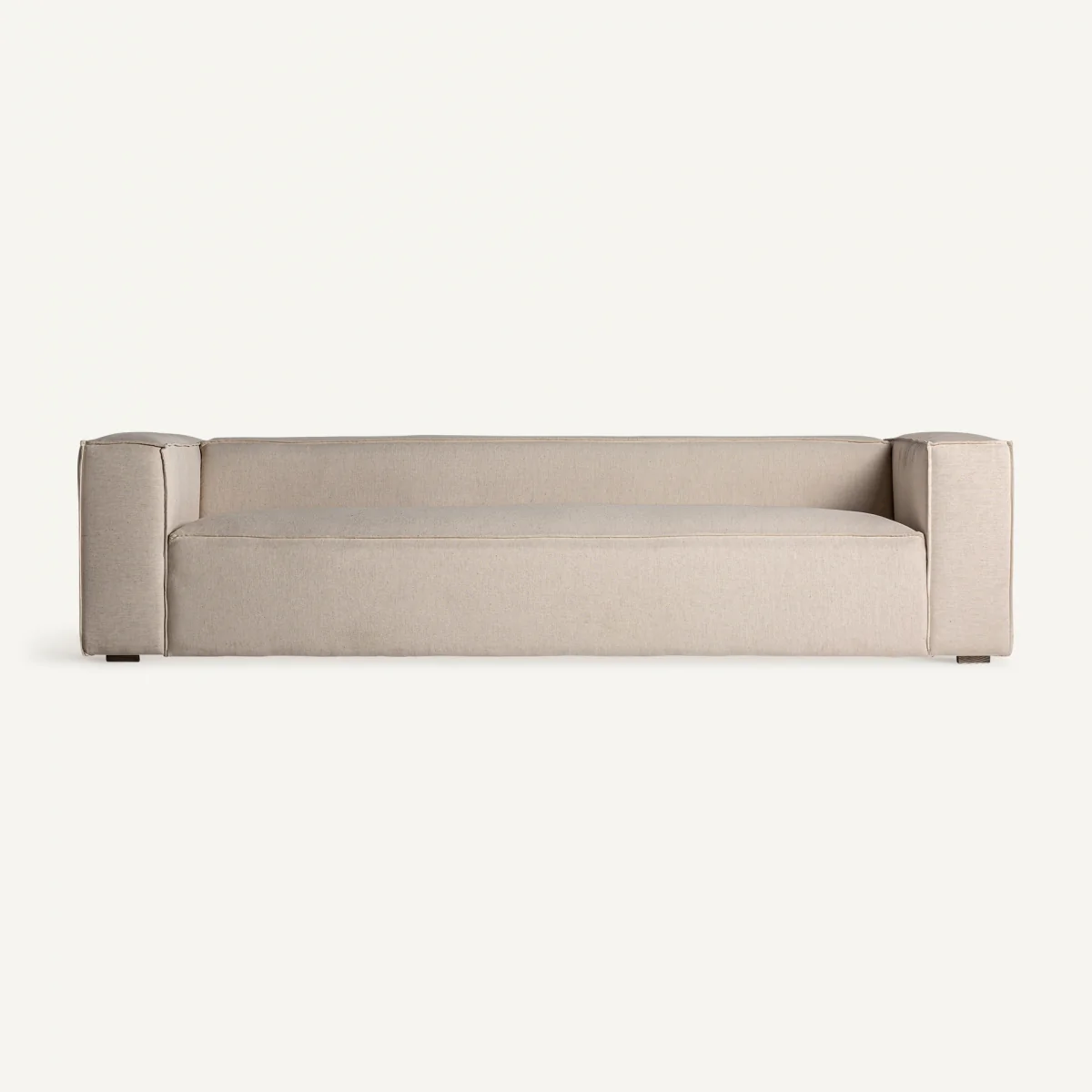El sofá Krakau es sinónimo de confort y diseño minimalista. Con una combinación de tonos beige, blanco roto y gris de lino y algodón, este sofá corte cuadrado ofrece un asiento muy cómodo y espacioso de cuatro plazas ideal para compartir momentos de relajación.