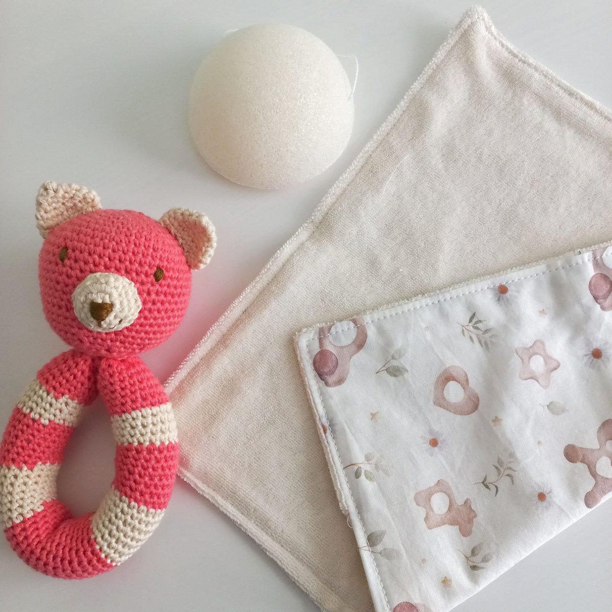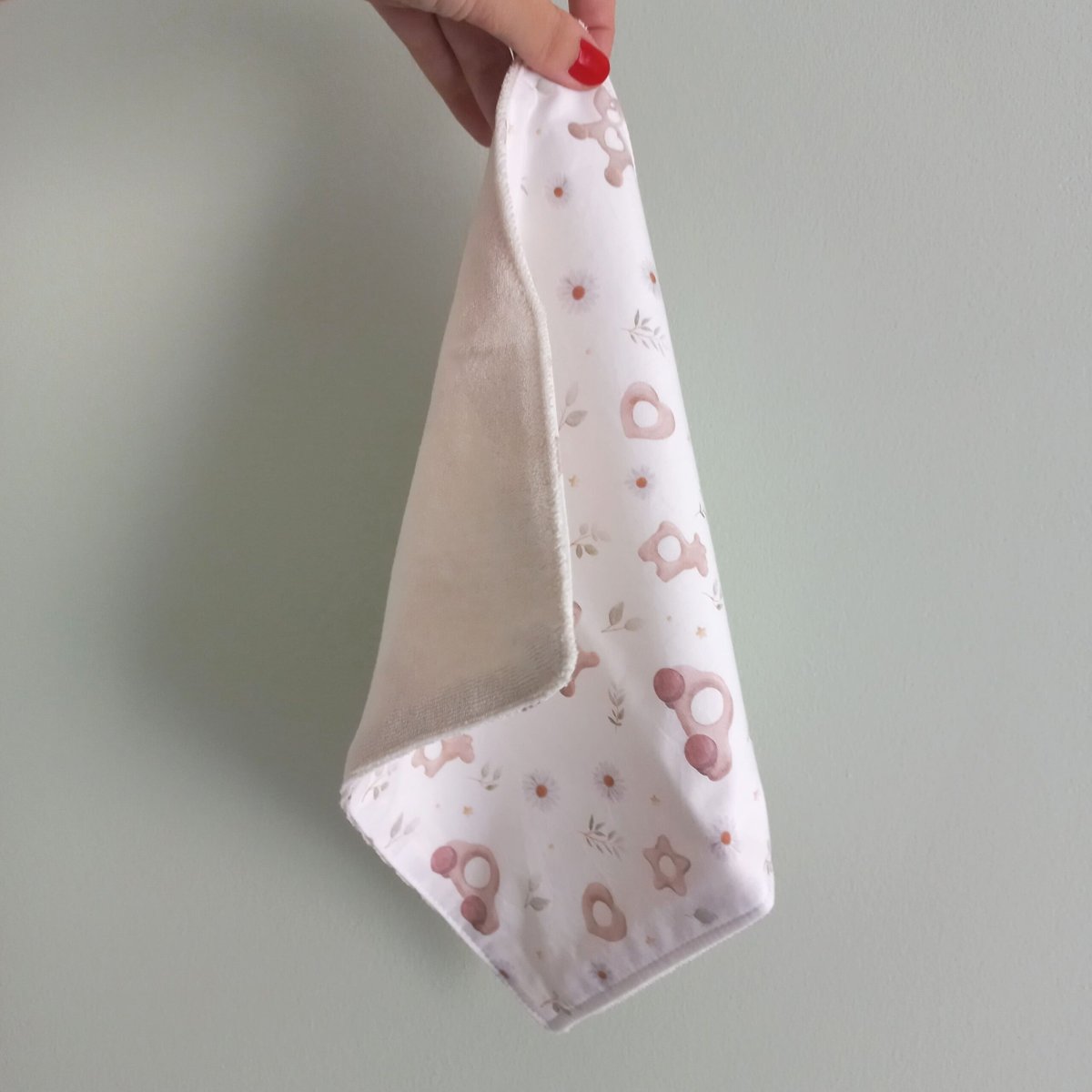 Confeccionadas de forma artesanal, combinan un lado de algodón estampado con un reverso de toalla absorbente y suave (rizo de algodón orgánico), ideal para la piel sensible del recién nacido.